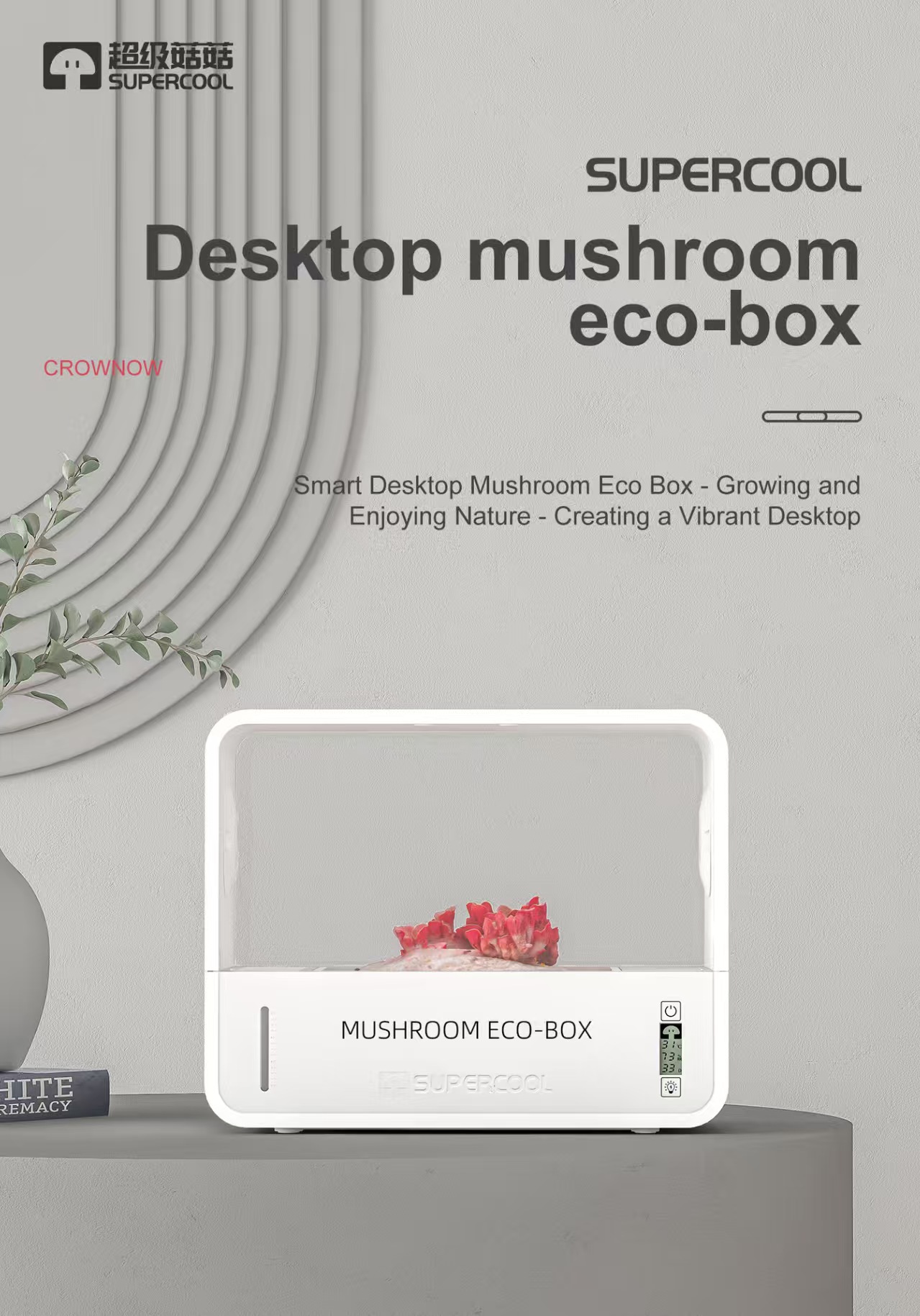 The Smart Mushroom Planter is an intelligent indoor growing device designed for convenient mushroom cultivation. With a compact structure and built-in environmental control features, the system helps maintain suitable conditions for mushroom growth, including temperature monitoring, humidity control, timing display, and air circulation.